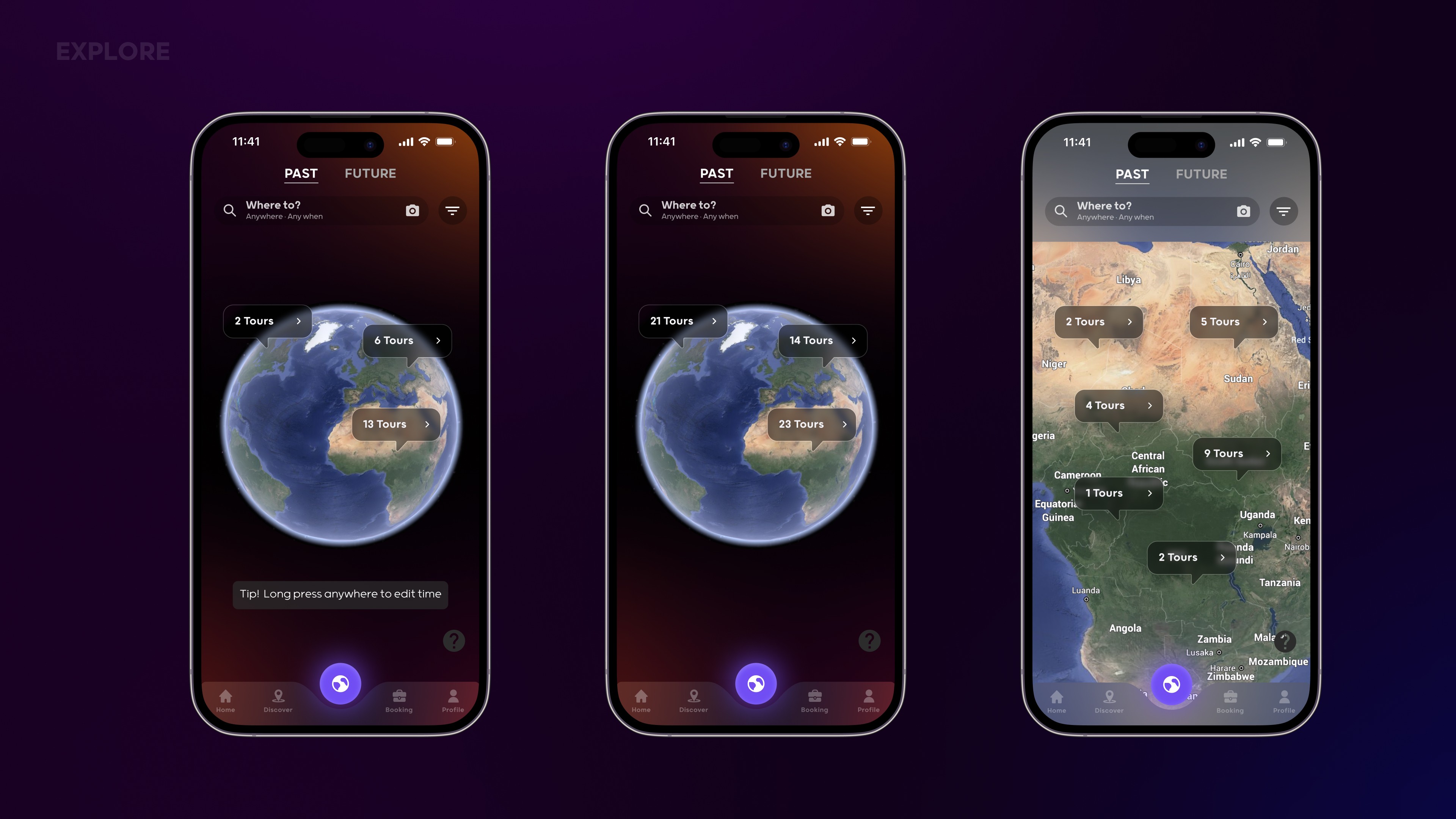The main challenge in this project was to create an intuitive and easy-to-navigate interface for an app that handles complex tasks like selecting specific dates, times, and locations. It needed to reduce user errors, avoid unsafe time periods, and help users discover interesting historical events.