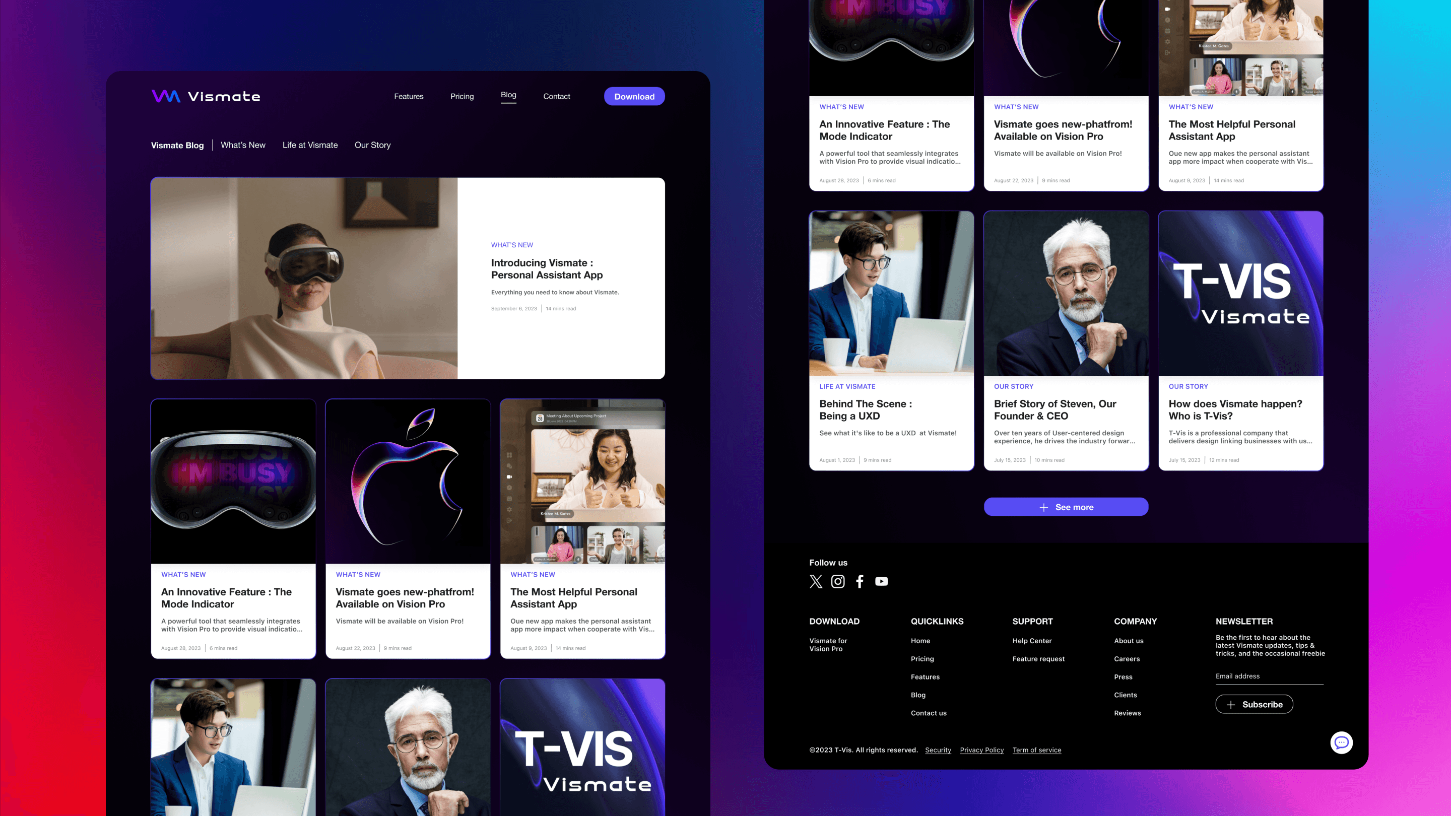A platform dedicated to promoting and showcasing the Personal Assistant app, Vismate, on Vision Pro by make user feel impact when see.